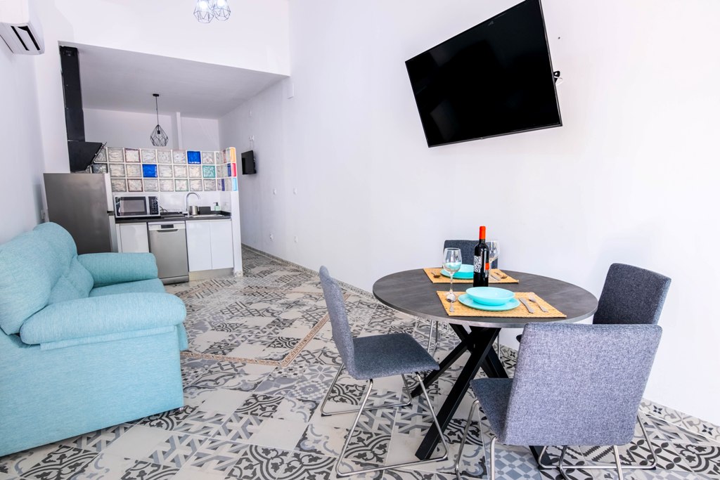 Departamento totalmente equipado para 2 personas, dispone de 1 cama doble, 1 sofá cama en la sala y la posibilidad de incorporar una cuna previo aviso. Tv, wifi gratis, plancha y mesa de planchar. Aire acondicionado (frío/calor) Además con todo a mano para preparar los refrigerios que desees en su cocina equipada con microondas y también nevera. En el cuarto de baño dispones de secador de pelo, champú y gel de cuerpo, toalla grande, de manos y cara. NO de playa.