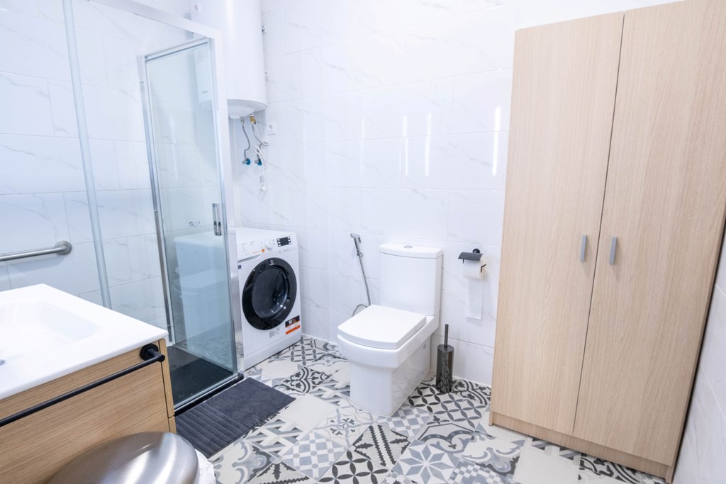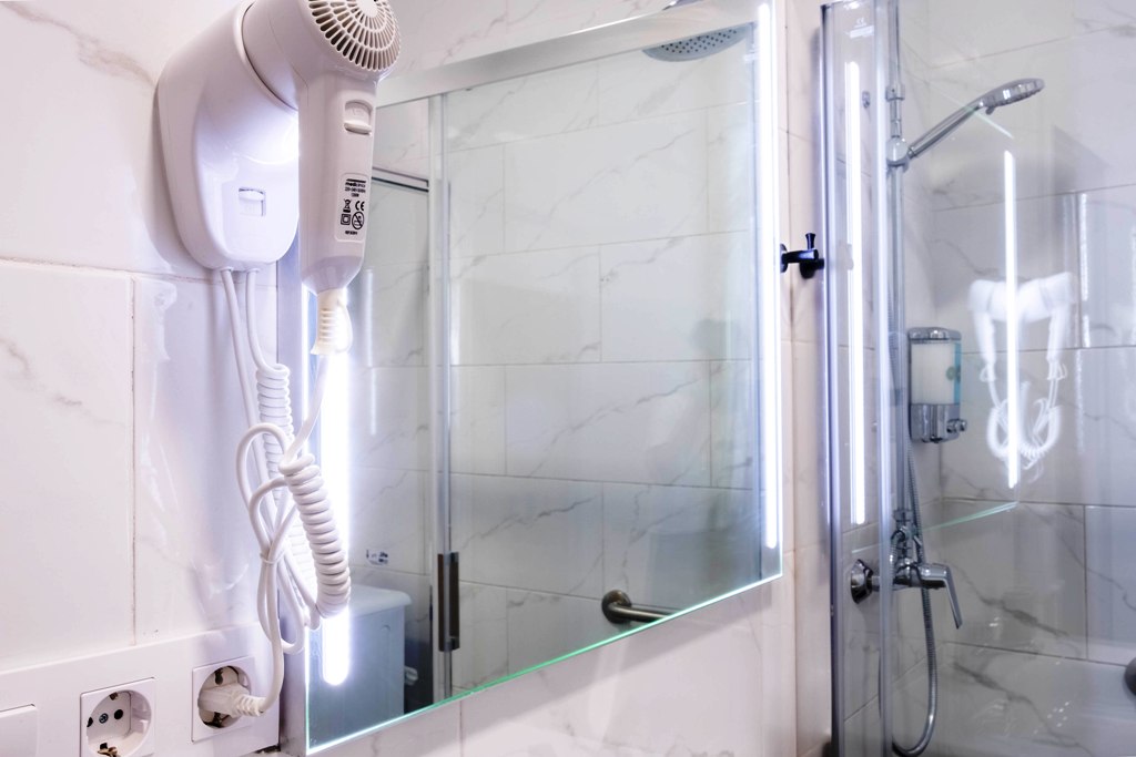 En el cuarto de baño dispones de secador de pelo, champú y gel de cuerpo, toalla grande, de manos y cara. NO de playa.